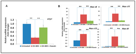 In addition, we found that OH-BBN treatment increased the expression of some LSD1 target genes, including sFRP1, Hox c8, c11, and c13, and Hox d1, and that the kawain diet reversed the effects of OH-BBN on the expression of LSD1 targeted genes in bladder tumor tissues of the OH-BBN bladder carcinogenesis model (Figure 6).