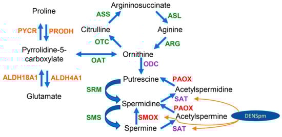 - Casero, R.A.; Pegg, A.E. Polyamine catabolism and disease. Biochem. J. 2009, 421, 323–338. [Google Scholar] [CrossRef]