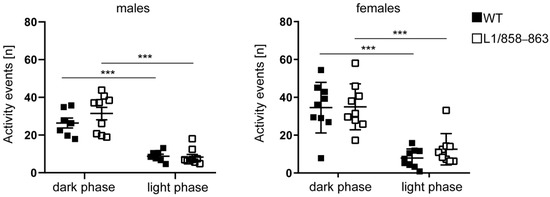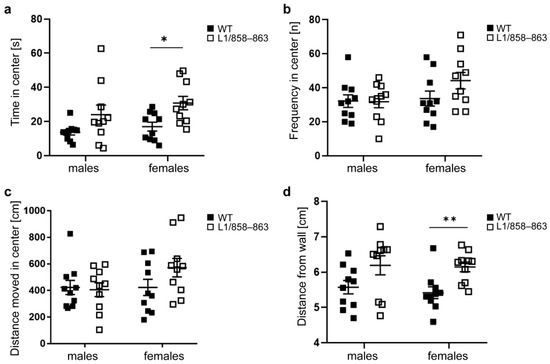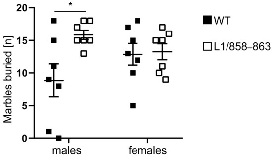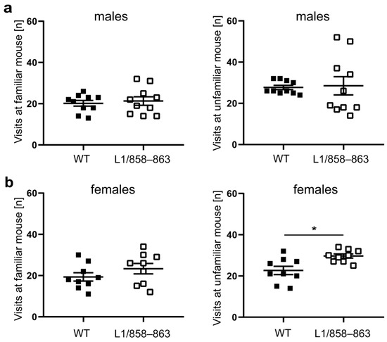 - Sauce, B.; Wass, C.; Netrakanti, M.; Saylor, J.; Schachner, M.; Matzel, L.D. Heterozygous L1-deficient mice express an autism-like phenotype. Behav. Brain Res. 2015, 292, 432–442. [Google Scholar] [CrossRef] [PubMed]