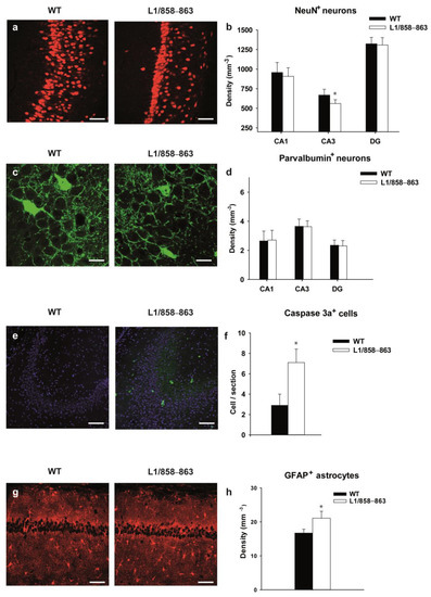 - Grońska-Pęski, M.; Schachner, M.; Hébert, J.M. L1cam curbs the differentiation of adult-born hippocampal neurons. Stem Cell Res. 2020, 48, 101999. [Google Scholar] [CrossRef]