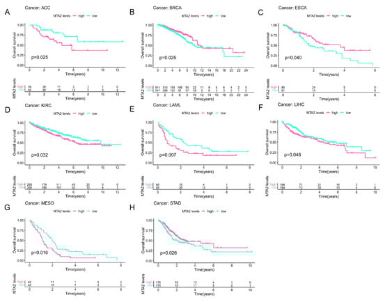 3.2. Prognostic Value of MTA2 in Pan-Cancer