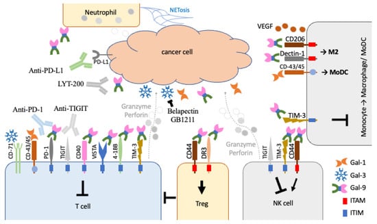 77. Yang, R.; Sun, L.; Li, C.F.; Wang, Y.H.; Yao, J.; Li, H.; Yan, M.; Chang, W.C.; Hsu, J.M.; Cha, J.H.; et al. Galectin-9 interacts with PD-1 and TIM-3 to regulate T cell death and is a target for cancer immunotherapy. Nat. Commun. 2021, 12, 832. [Google Scholar] [CrossRef]