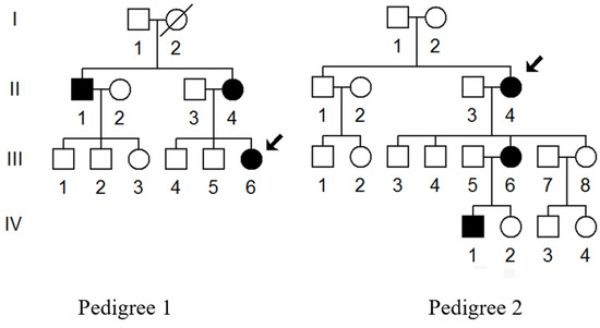 Two Chinese families with T2DM; arrows indicate the probands (III-6 in Pedigree 1 and II-4 in Pedigree 2).