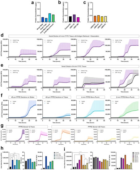 - Dressler, F.F.; Schoenfeld, J.; Revyakina, O.; Vogele, D.; Kiefer, S.; Kirfel, J.; Gemoll, T.; Perner, S. Systematic Evaluation and Optimization of Protein Extraction Parameters in Diagnostic FFPE Specimens. Clin. Proteom. 2022, 19, 10. [Google Scholar] [CrossRef] [PubMed]