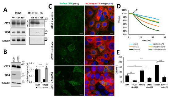 3.1. Interaction with YES1 Decreases rF508del-CFTR Functional Permanence at the PM
