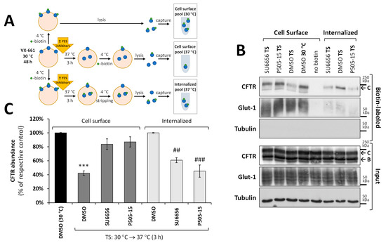- Okiyoneda, T.; Barrière, H.; Bagdány, M.; Rabeh, W.M.; Du, K.; Höhfeld, J.; Young, J.C.; Lukacs, G.L. Peripheral Protein Quality Control Removes Unfolded CFTR from the Plasma Membrane. Science 2010, 329, 805–810. [Google Scholar] [CrossRef] [PubMed]