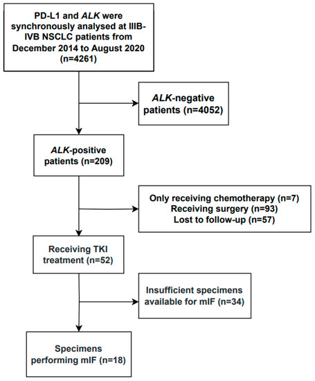 - Zeng, C.; Gao, Y.; Xiong, J.; Lu, J.; Yang, J.; Wang, X.; Cai, Y.; Li, L.; Fu, X. Tumor-infiltrating CD8+ T cells in ALK-positive lung cancer are functionally impaired despite the absence of PD-L1 on tumor cells. Lung Cancer 2020, 150, 139–144. [Google Scholar] [CrossRef] [PubMed]