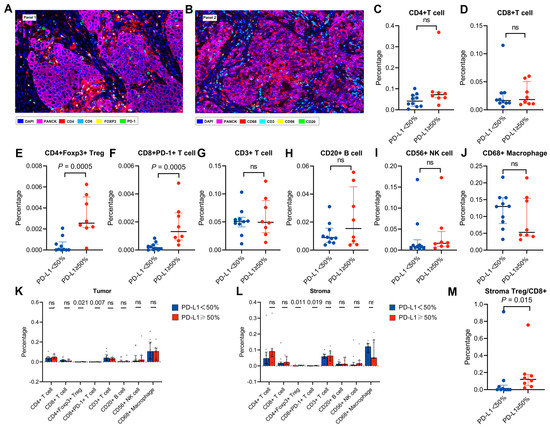 3.3. Features of the Tumour Immune Microenvironment in Patients with High PD-L1 Expression