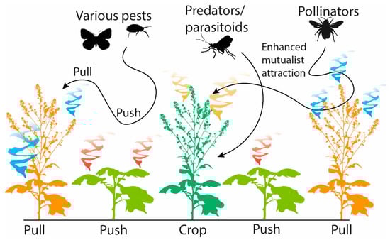 - Pickett, J.A.; Woodcock, C.M.; Midega, C.A.; Khan, Z.R. Push–Pull Farming Systems. Curr. Opin. Biotechnol. 2014, 26, 125–132. [Google Scholar] [CrossRef] [PubMed]