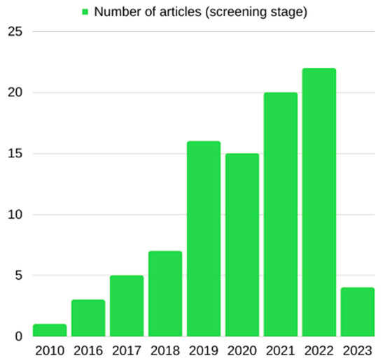 After both searches, the records of all articles were collected, and duplicates were removed using automation tools (Zotero Citation Manager software, https://www.zotero.org/, accessed on 26 June 2023).