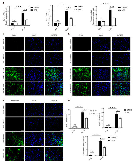 3.3. 3PO Attenuates Cardiac Fibrosis Induced by MI
