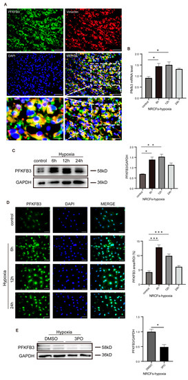3.5. PFKFB3 Is Abundantly Expressed in CFs following MI and under Hypoxia