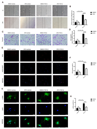 3.6. 3PO Mitigates the Migration, Proliferation, and Activation of CFs Induced by TGF-β1