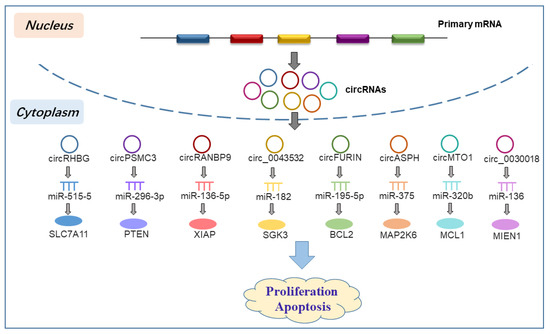 - Han, B.; Chao, J.; Yao, H. Circular RNA and its mechanisms in disease: From the bench to the clinic. Pharmacol. Ther. 2018, 187, 31–44. [Google Scholar] [CrossRef]