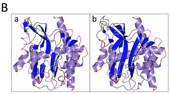 - Jumper, J.; Evans, R.; Pritzel, A.; Green, T.; Figurnov, M.; Ronneberger, O.; Tunyasuvunakool, K.; Bates, R.; Zidek, A.; Potapenko, A.; et al. Highly accurate protein structure prediction with AlphaFold. Nature 2021, 596, 583–589. [Google Scholar] [CrossRef]