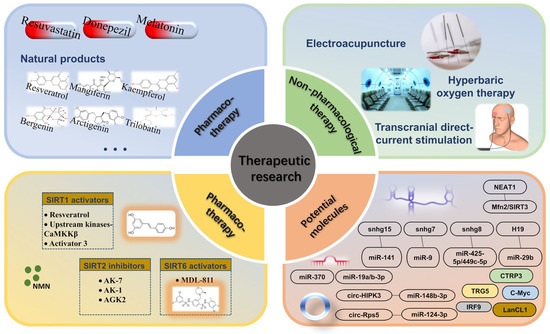 Pharmacotherapy and non-pharmacological therapeutic/rehabilitative interventions targeting SIRTs.