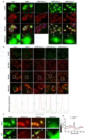 3.3. S100P Is Found Associated at the Cell Surface of the Plasma Membrane in Trophoblast Cells