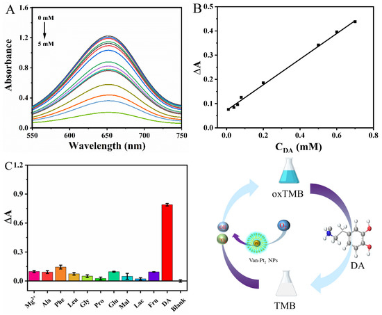 APA StyleXue, Y., Liu, K., Gao, M., Zhang, T., Wang, L., Cui, Y., Ji, X., Ma, G., & Hu, J. (2023). Vancomycin-Stabilized Platinum Nanoparticles with Oxidase-like Activity for Sensitive Dopamine Detection. Biomolecules, 13(9), 1312. https://doi.org/10.3390/biom13091312