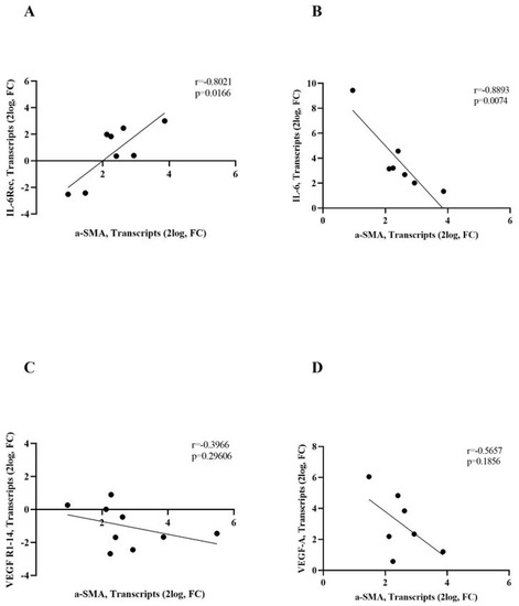 3.5. IL-6R/IL-6 and VEGF-R1/VEGF-A Transcripts Correlate with α-SMA Transcripts