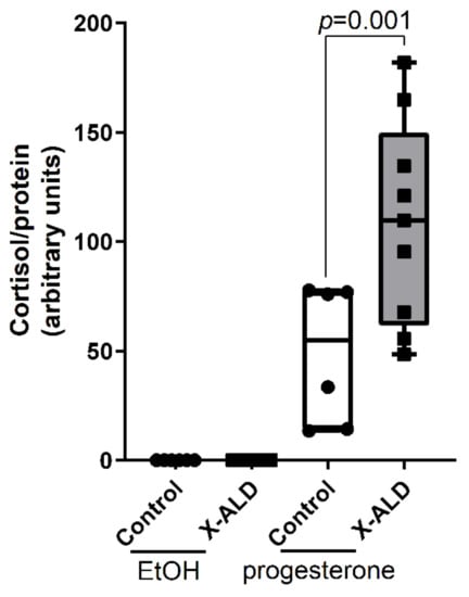3.6. X-ALD Fibroblasts Produce a Higher Amount of Cortisol after Progesterone Stimulation