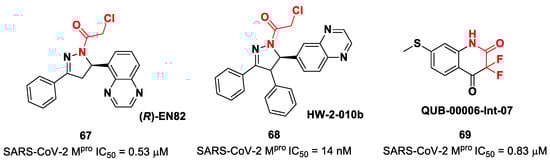 On the basis of the (C-terminal) electrophilic warhead, it is possible to classify the SARS-CoV-2 Mpro inhibitors into different groups:
