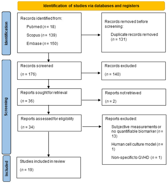 We conducted a comprehensive search across various databases, resulting in the identification of 307 relevant records. After the initial screening and removal of duplicates, 176 records remained for further evaluation. Following a detailed assessment of titles and abstracts, 36 studies met our initial inclusion criteria. Subsequent full-text evaluations resulted in 19 studies being included in the final review. The selection process is summarized in Figure 1.