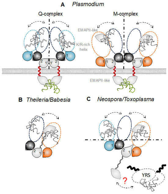 - Jaramillo Ponce, J.R.; Kapps, D.; Paulus, C.; Chicher, J.; Frugier, M. Discovery of Two Distinct Aminoacyl-tRNA Synthetase Complexes Anchored to the Plasmodium Surface tRNA Import Protein. J. Biol. Chem. 2022, 298, 101987. [Google Scholar] [CrossRef] [PubMed]