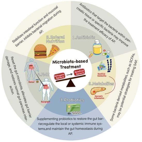 4. Potential Strategies for Targeting the Microbiota–Pancreatic Axis in the Treatment of AP