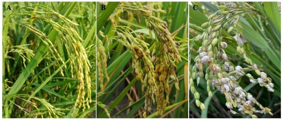 - Huang, S.; Liu, L.; Wang, L.; Hou, Y. Identification of rice resistance to RFS, management and prospection of RFS. J. Agric. Sci. 2019, 11, 275–284. [Google Scholar]