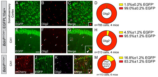 3.3. A Small Portion of Oligodendrocytes Express BDNF in the Hippocampal CA1 Subregion