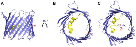 The N-terminal segment (amino acids 1–25) traverse the entire pore, forming a horizontal helical arrangement that is tightly held against the interior wall of the pore through hydrophobic interactions. The interior face of the helix—facing the pore—is lined with several charged residues and is ideally positioned to regulate the conductance of ions and metabolites passing through the VDAC pore and thus has been a major area of study. Subsequent structures of VDAC-1 soaked with ATP showed that residue Lys-12 of the N-terminal helix coordinates the adenine riboside moiety of ATP (Figure 2C) [14]. This ATP bound structure led to additional studies [21,22] showing the importance of Lys-12 for guiding gating transitions and ion selectivity for VDAC-1.