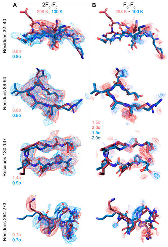 - Fraser, J.S.; van den Bedem, H.; Samelson, A.J.; Lang, P.T.; Holton, J.M.; Echols, N.; Alber, T. Accessing protein conformational ensembles using room-temperature X-ray crystallography. Proc. Natl. Acad. Sci. USA 2011, 108, 16247–16252. [Google Scholar] [CrossRef] [PubMed] [PubMed Central]