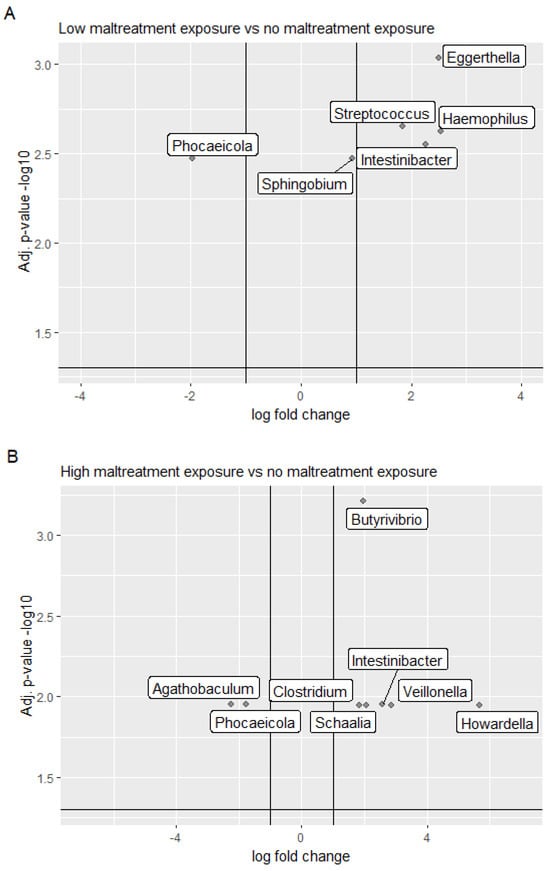 3.4. Maltreatment Exposure During Childhood Is Associated with Significant Alterations in Gut Microbial Composition