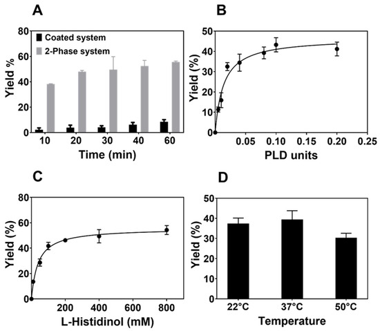 - Yang, H.; Woscholski, R. A Novel High-Throughput Assay Reveals That the Temperature Induced Increases in Transphosphatidylation of Phospholipase D Are Dependent on the Alcohol Acceptor Concentration. Biomolecules 2022, 12, 632. [Google Scholar] [CrossRef]