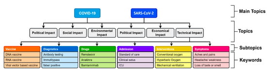 - Topics: Broad categories related to a domain, such as Vaccination, Pandemics, Diagnostics, and Drugs (e.g., Vaccination in Figure 5).