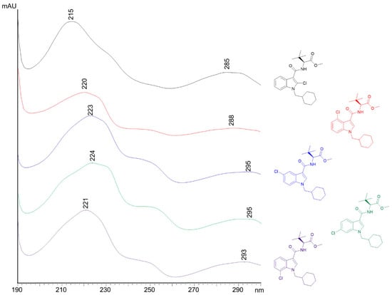 UV/VIS spectra for the five chloroindole isomers of MDMB-CHMICA.