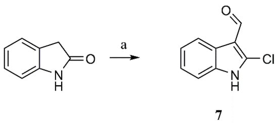 Synthesis of 2-chloroindole-3-carbaldehyde from oxindole. Reagents and conditions: (a) POCl3, DMF, DCM, H2O.
