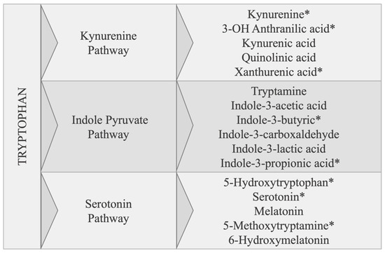 - Roth, W.; Zadeh, K.; Vekariya, R.; Ge, Y.; Mohamadzadeh, M. Tryptophan Metabolism and Gut-Brain Homeostasis. Int. J. Mol. Sci. 2021, 22, 2973. [Google Scholar] [CrossRef]