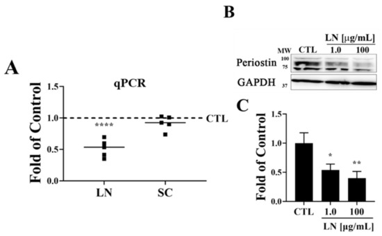 3.3. LN Decreases POSTN Signaling in Human OA Chondrocytes