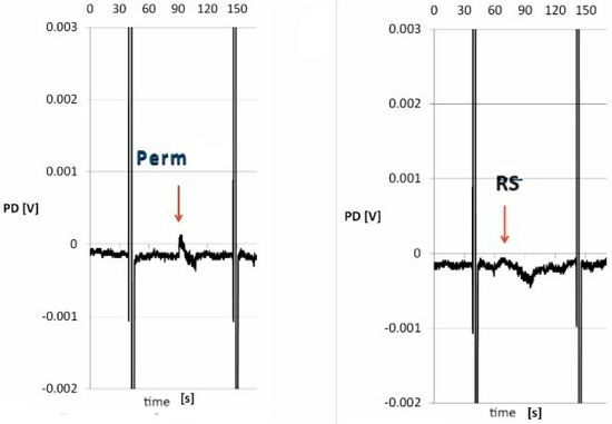 The skin specimens treated with both Perm and Delta remained viable and reactive. The use of the mechanical–chemical stimulation (Perm, Delta) and the mechanical stimulation (RS) induced repeatable changes in ion transport, which were different from those recorded in stationary conditions, i.e., without any stimulation (Wilcoxon test, Table 4). The PDmin and PDmax for both the Delta and RS stimulations showed values higher than those for Perm, and the differences among the individual stimulations were insignificant. However, the fragments treated with Delta were significantly more reactive as compared to the fragments incubated in Perm (Mann–Whitney test, Table 4). Moreover, the Delta stimulation did not generate electropositive PDmax, unlike the Perm or RS stimulation (regardless of the pyrethroid used for the incubation). Interestingly, the responses to Perm were significantly lower as compared to Delta (Figure 4 and Figure 5).