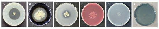 The enzymatic activity and the secondary metabolites produced by B. stercoris Strain 92p. (A) Protease production, (B) Amylase production, (C) Phosphate solubilization assay, (D) Cellulase production, (E) β-1,3-Glucanase production, (F) Siderophore production.