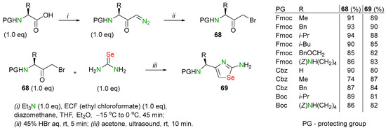 Synthesis of 4-aryl-substituted 2-amino-1,3-selenazoles 67.