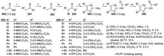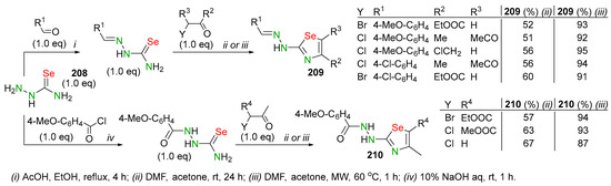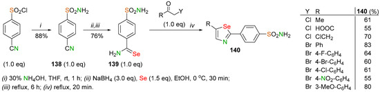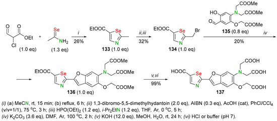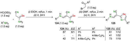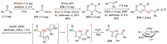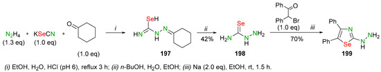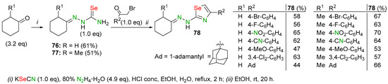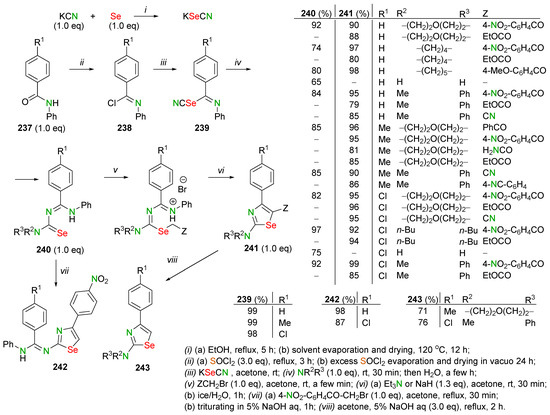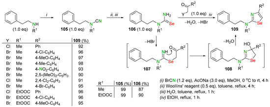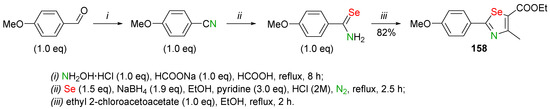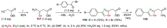 - Langer, P. Adventures in 1,3-selenazole chemistry. Synlett 2022, 33, 728–736. [Google Scholar] [CrossRef]