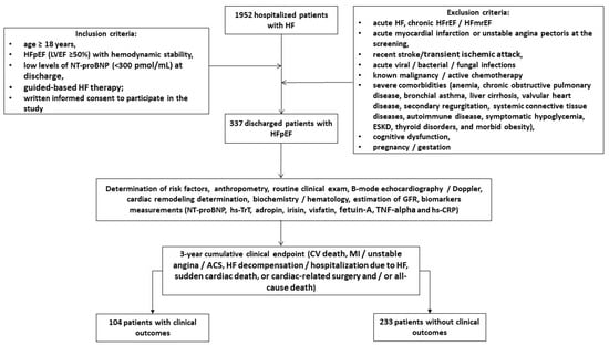 - Ammar, L.A.; Massoud, G.P.; Chidiac, C.; Booz, G.W.; Altara, R.; Zouein, F.A. BNP and NT-proBNP as prognostic biomarkers for the prediction of adverse outcomes in HFpEF patients: A systematic review and meta-analysis. Heart Fail. Rev. 2024, 30, 45–54. [Google Scholar] [CrossRef] [PubMed]