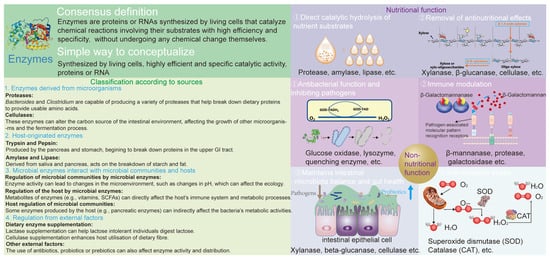2. Nutritional and Non-Nutritional Functions of Enzymes and Their Effects on Microbiota
