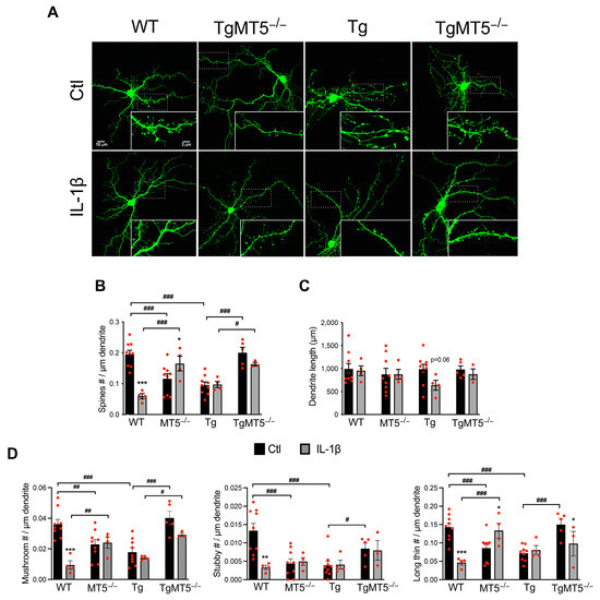 4.2. MT5-MMP Deficiency and IL-1β Affect Dendritic Spine Integrity