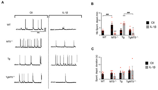 3.6. Effects of MT5-MMP Deficiency and IL-1β on Spontaneous Neuronal Activity