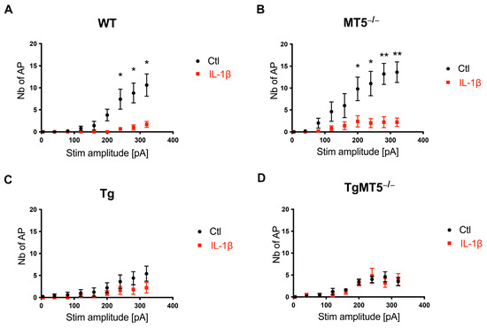 3.7. Induced Firing Is Altered by MT5-MMP Deficiency, AD Mutations, and IL-1β Exposure