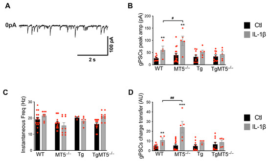3.8. Effects of MT5-MMP Deficiency and IL-1β on Global Miniature Synaptic Currents
