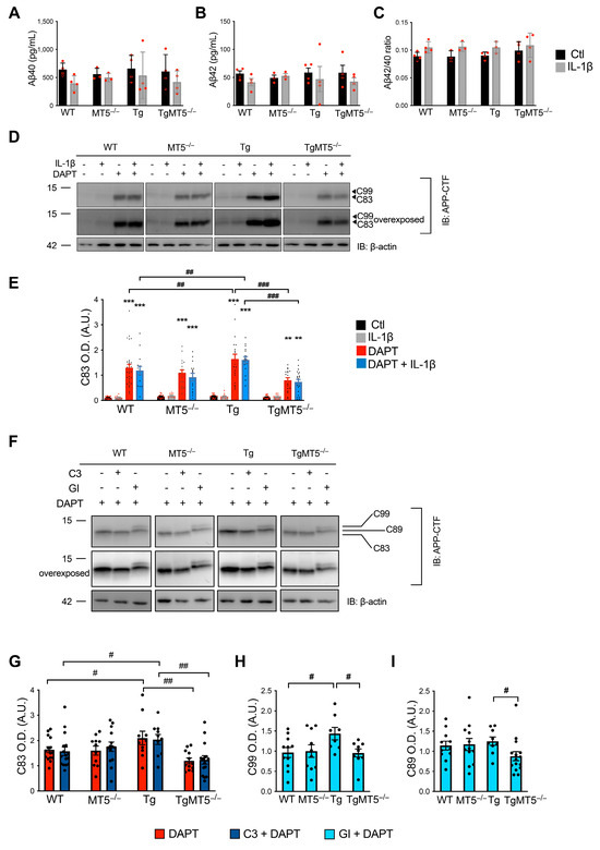 4.1. MT5-MMP Deficiency Affects IL-1β Signaling Independently of APP Metabolism in Mature Primary Neural Cells